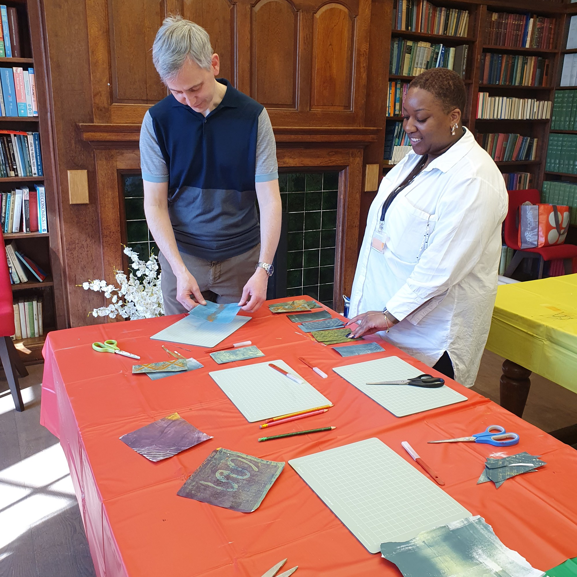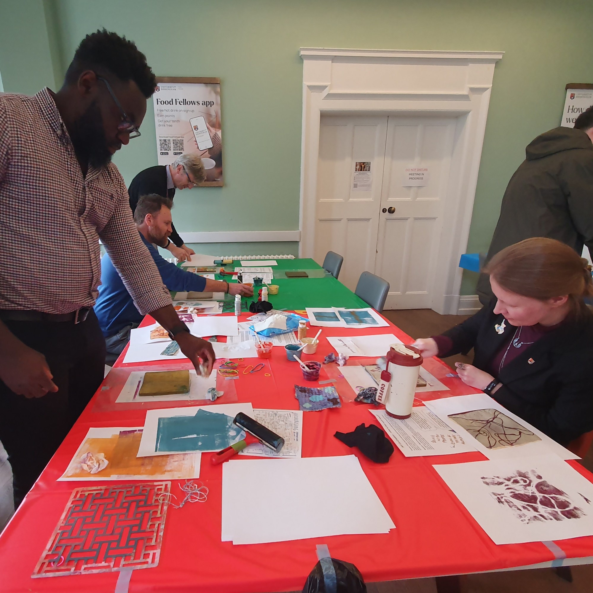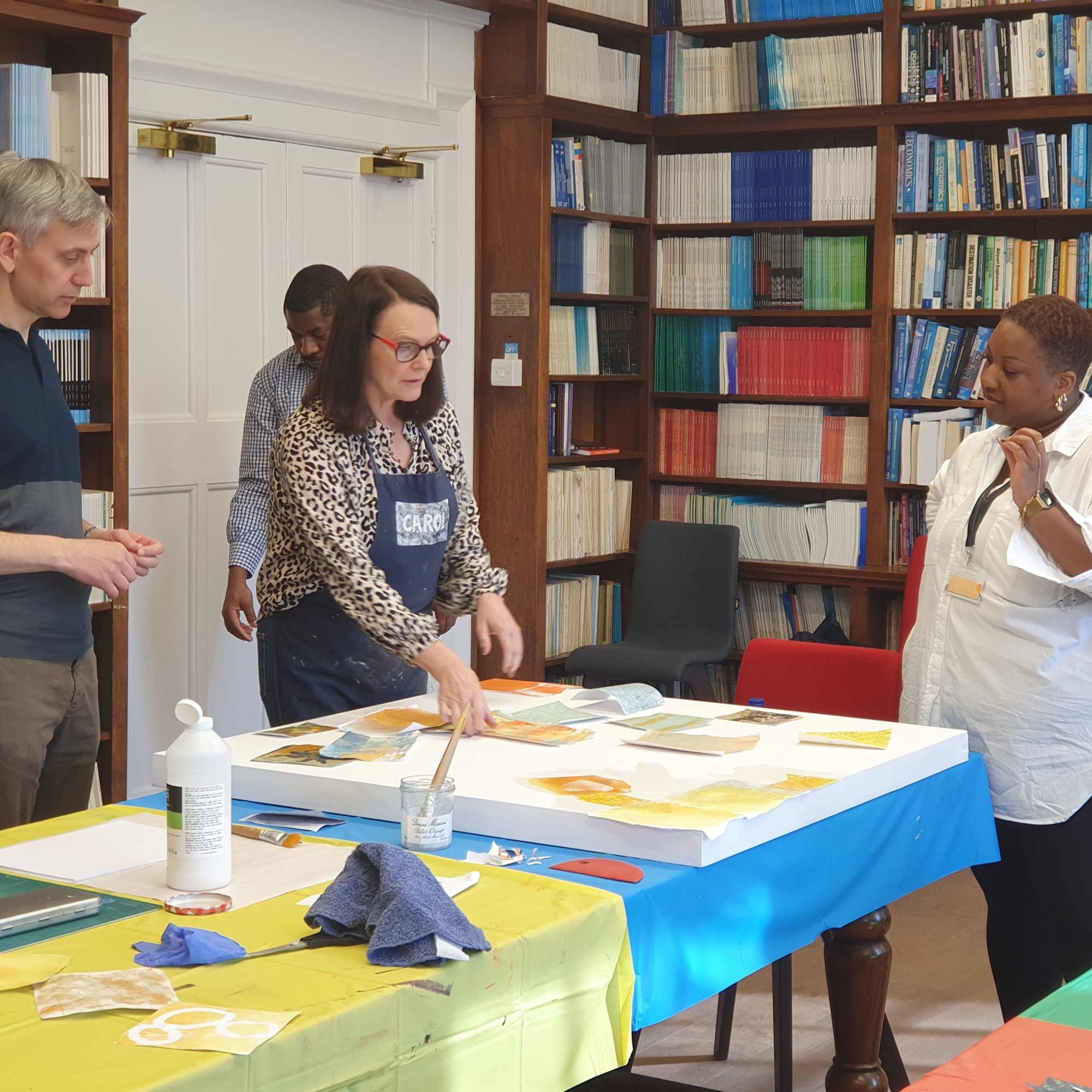 Central to this effort is collaborating with students and staff across the Business School to understand their needs and enhance their representation within University House. Activities have included poetry workshops and surveys to gather student experiences and desires, ensuring proposed changes are relevant and impactful. More recently, we worked in collaboration with artist Carol Pairaudeau put on a two-day workshop to create a piece of art to hang in University House.