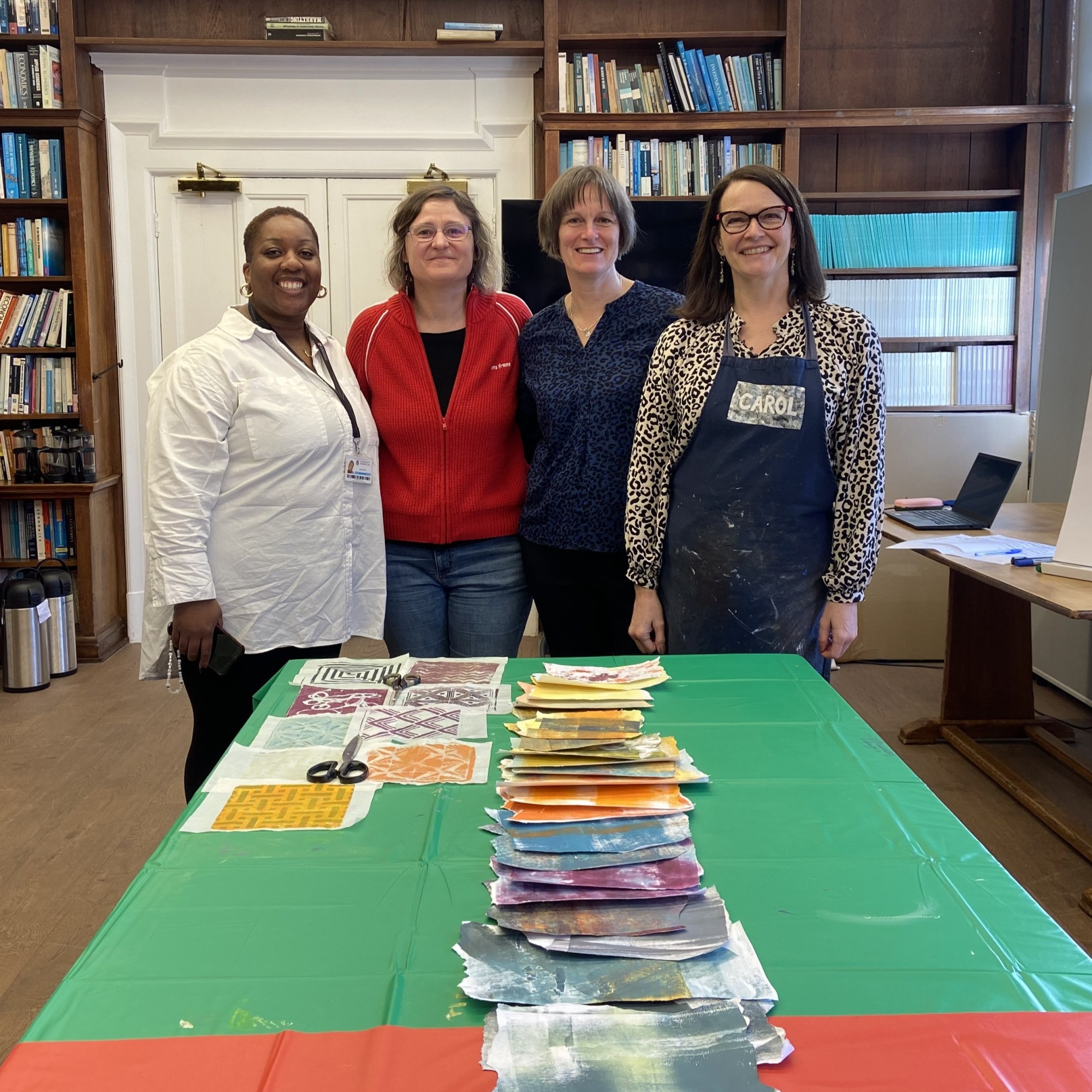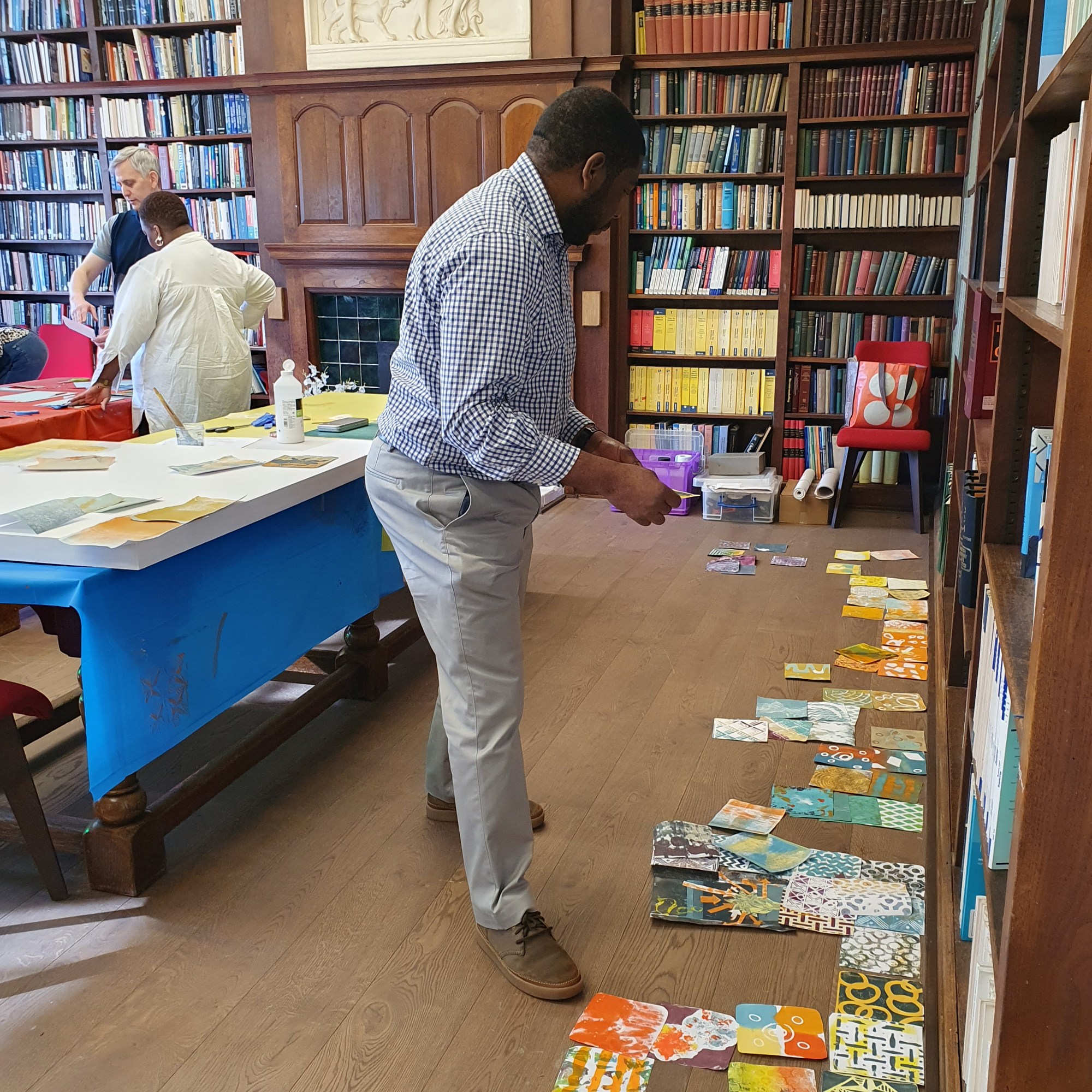 Over the two days, we invited over 80 students and staff to come together and create their own piece of art which represents themselves. The first day had participants make their own prints, incorporating their own histories and identities into their artworks, which were then transformed on the second day into a collage, encapsulating all the identities of everyone who is a part of Birmingham Business School to create the final piece.